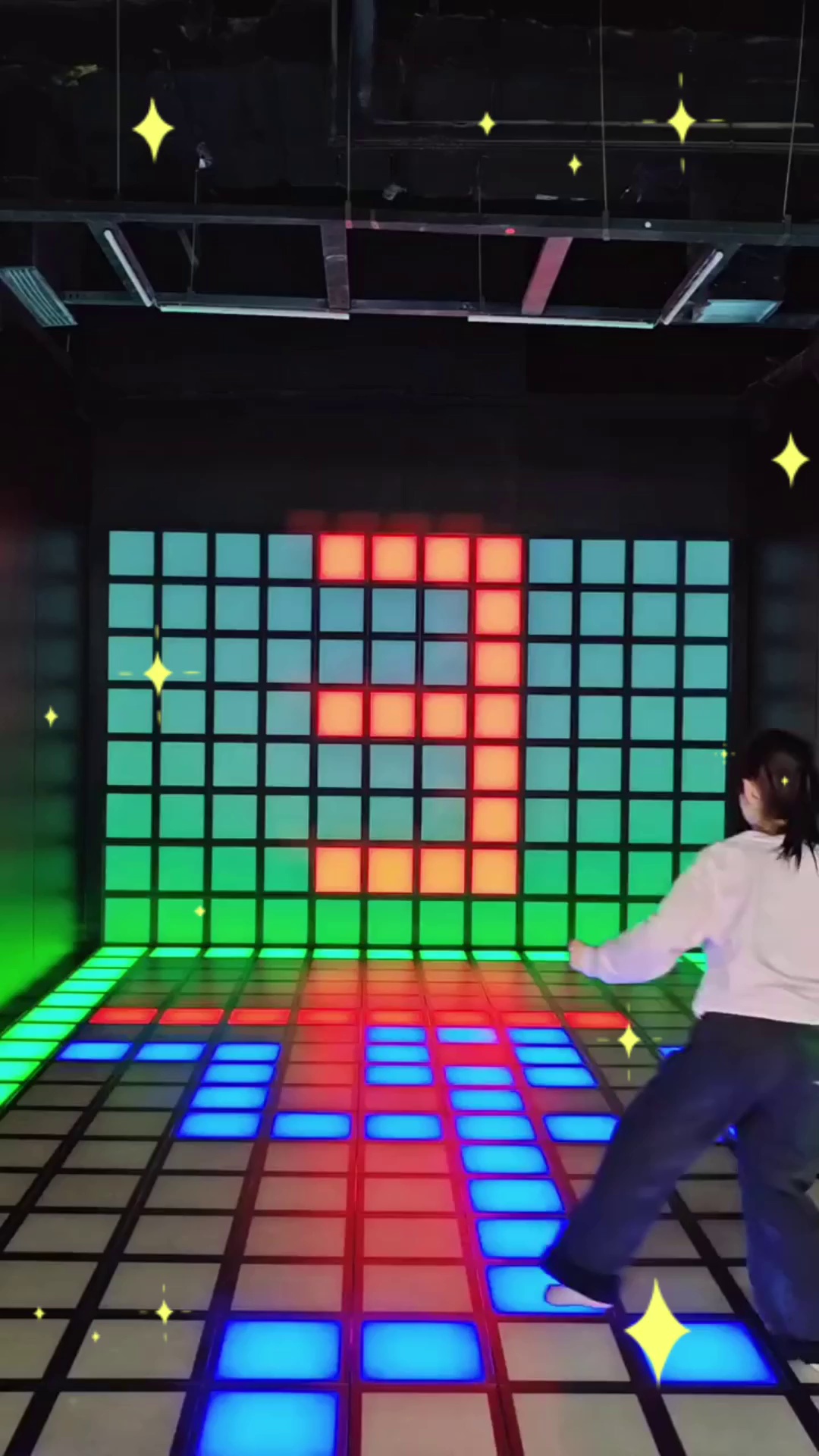 Experience the future of indoor entertainment with this interactive LED grid floor game!